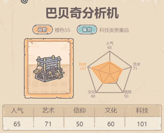 3、巴贝奇分析机置于时光机,赋予效果:贵重品自身科技+15