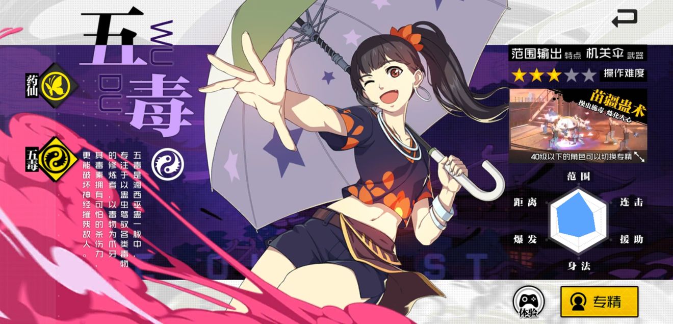 五毒专精的技能划分为毒和蛊,众所周知CD不是一般的长。