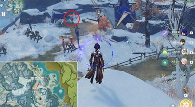 2.随后我们来到覆雪之路传送锚点,朝着北方向走,在愚人众营地可以看到有1只。