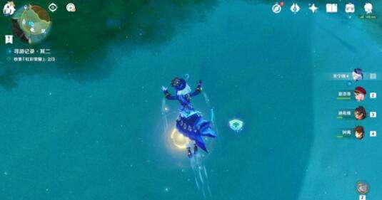 1、玩家完成第一天任务后潜入水底,在如图位置吹奏海螺。
