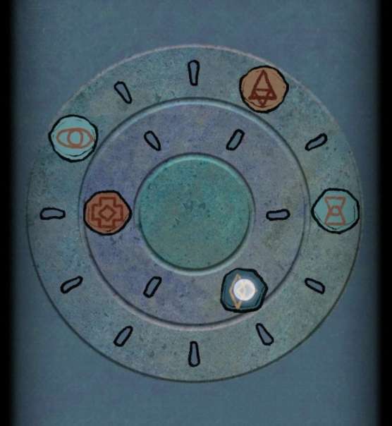 10.点击右侧大门,上面有锁,线索分别在第一章天台的书和第二章旧宅的钟表上,正解如下:(仔细看书上的符号和这里的符号是相反的,证明我们看到的书是倒着的,所以应该倒过来看)。