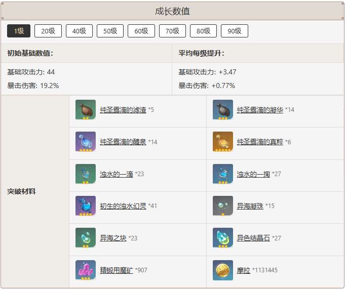 成长数值一览