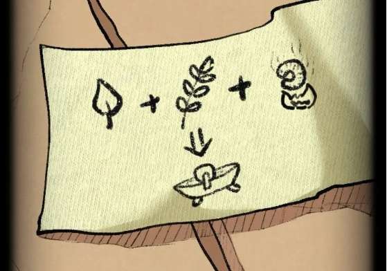 14.找到这个研磨器,把烤熟的幼虫、干树叶1、干树叶2放进去研磨,获得干粉。