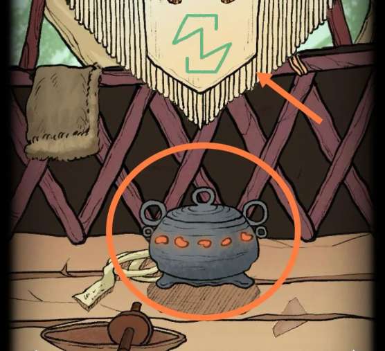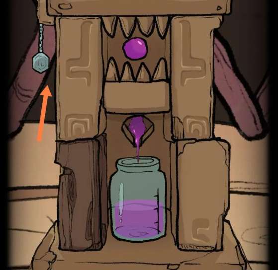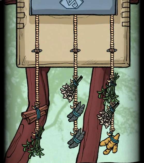 13.找到这个吊绳,把药材放上去,获得蓝色符号,顺序为:第一列药材E、药材B第二列药材A、药材C、药材C第三列药材A、药材B、药材D。