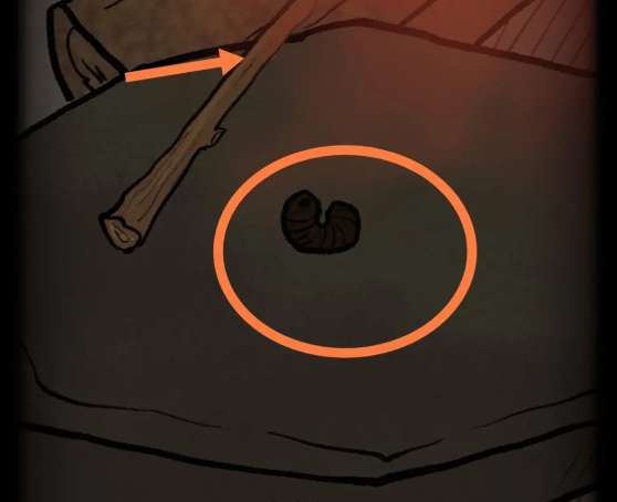 12.点击柴火旁边,获得点燃的树枝,把幼虫放在石板上烤熟,获得烤熟的幼虫。