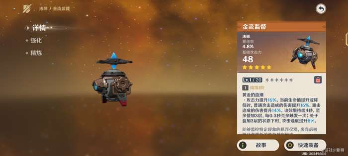 该武器可提供提供暴击率、普通攻击/重击伤害加成和攻击速度加成,有效提升伤害输出。