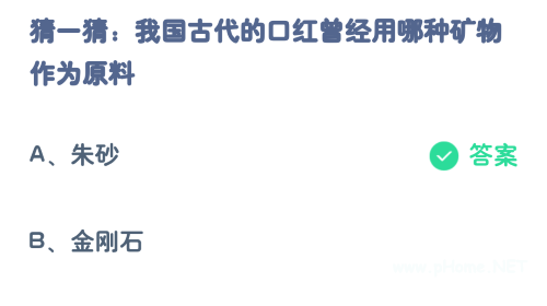 1、问题:我国古代的口红曾经用哪种矿物作为原料