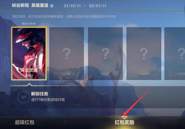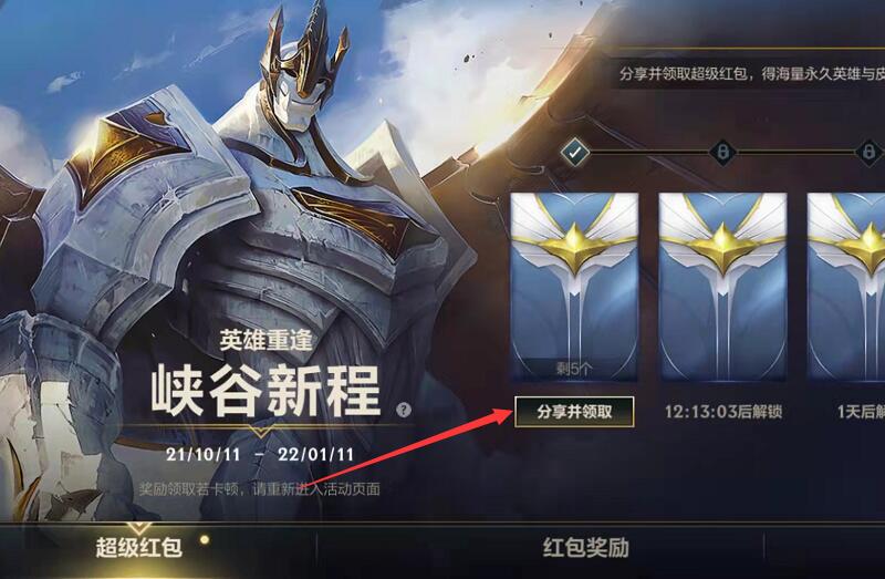 1、首先玩家需要进入峡谷新程界面,点击超级红包;