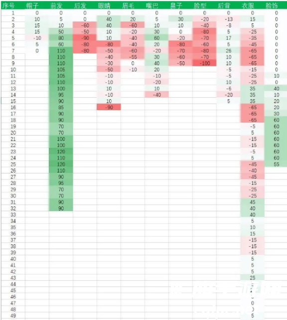 二、捏脸数据表