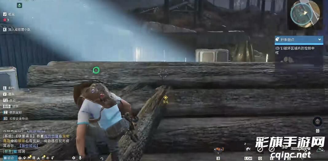 3、接着我们需要找到一个特定的地点,也就是图中的木头处,上去木堆。