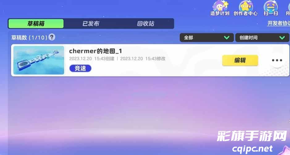 3、退出后,我们的地图就保存在草稿箱了,我们可以再次进入继续创造。