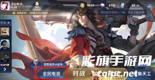 1、首先打开游戏,在游戏大厅里面点击下面的【全民电竞】选项然后进入。