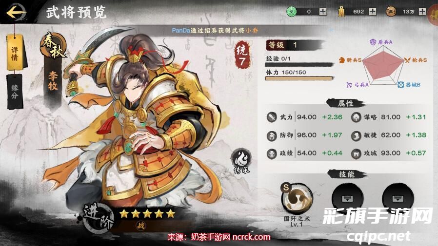 小编建议的最强阵容之一,搭配秦锐士兵种。白起输出稳定,技能提高暴击率,李牧能削弱敌人的防御,而王翦则提供增益效果,让你轻松击败对手。