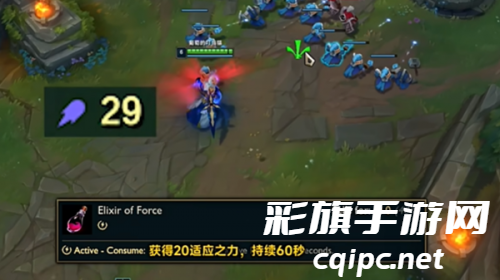 2、在6级时获得力量合剂,在使用后的60秒内,获得20点适应之力,是后期大团或中期爆发收割的不错助力。