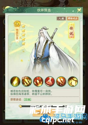 是一个群体攻击能力非常强大的伙伴,在游戏中,他的大招可以攻击到敌方所有敌人,而且伤害非常之高,只是对于平民玩家来说,获取难度较大,我们需要考虑这一点,但是如果你有他,那他绝对是具有群攻能力的伙伴中数一数二的存在。