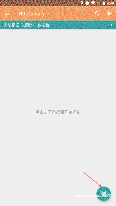 添加好目标应用后,点击主页右下角的小飞机图标,开启抓包,开启抓包后进入轻颜相机,随便点两下就可以返回Http Canary了。