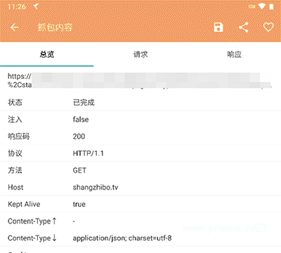 3、点击home键,把该抓包app挂在后台,然后去操作你要抓包的app。然后再返回抓包app,就可以看见抓到的数据。