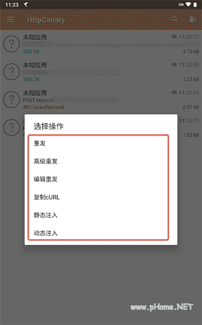 4、长按抓到的数据包,可以进行一系列的操作。像重发啊,编辑请求再发送等等。