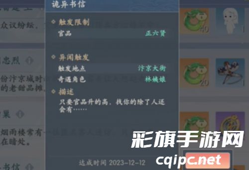 5、诡异书信:正六贤后前往汴京大街,与戏台旁边林姨娘对话完成奇遇。