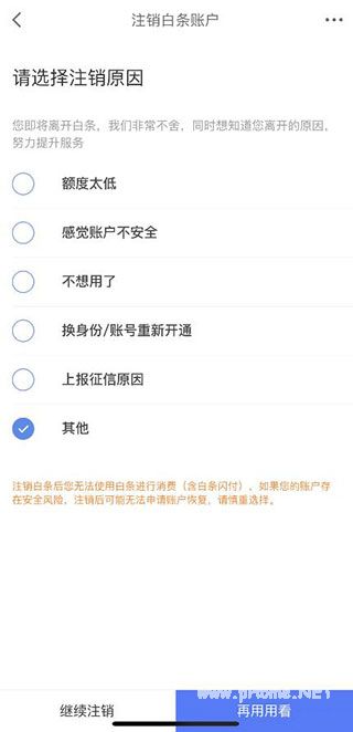 5、选择任意注销原因,点击底部【继续注销】。