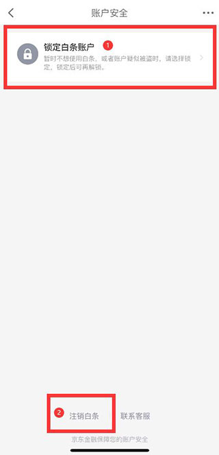 4、这一步很重要!顶部大大的是锁定白条账户,不是注销!请点击底部位置的【注销白条】按钮。