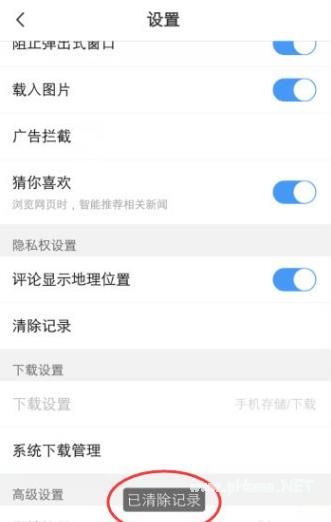 在设置页面,往下滑动页面,在隐私权设置,点击【清除记录】就可以清除浏览器的相关数据。