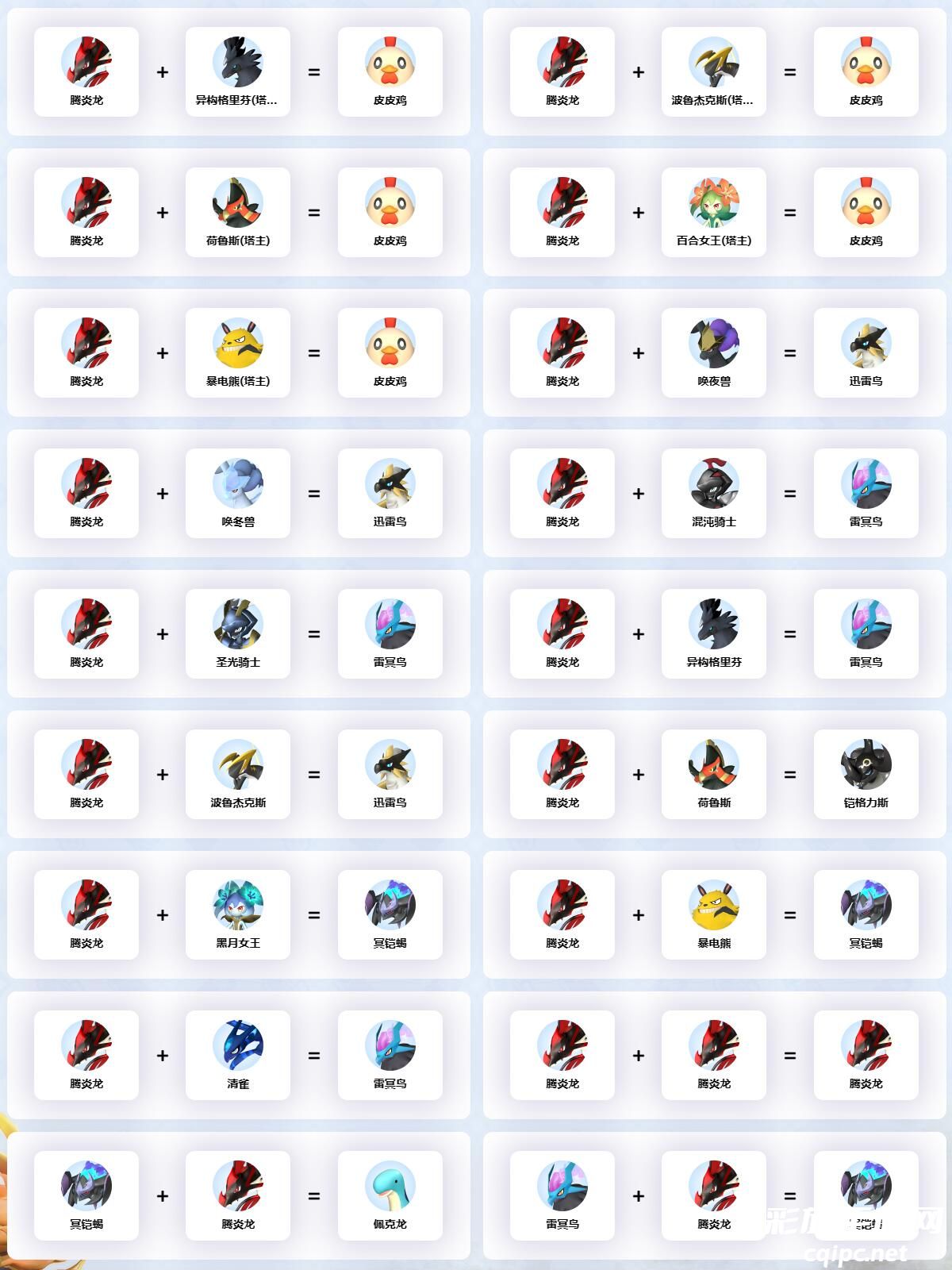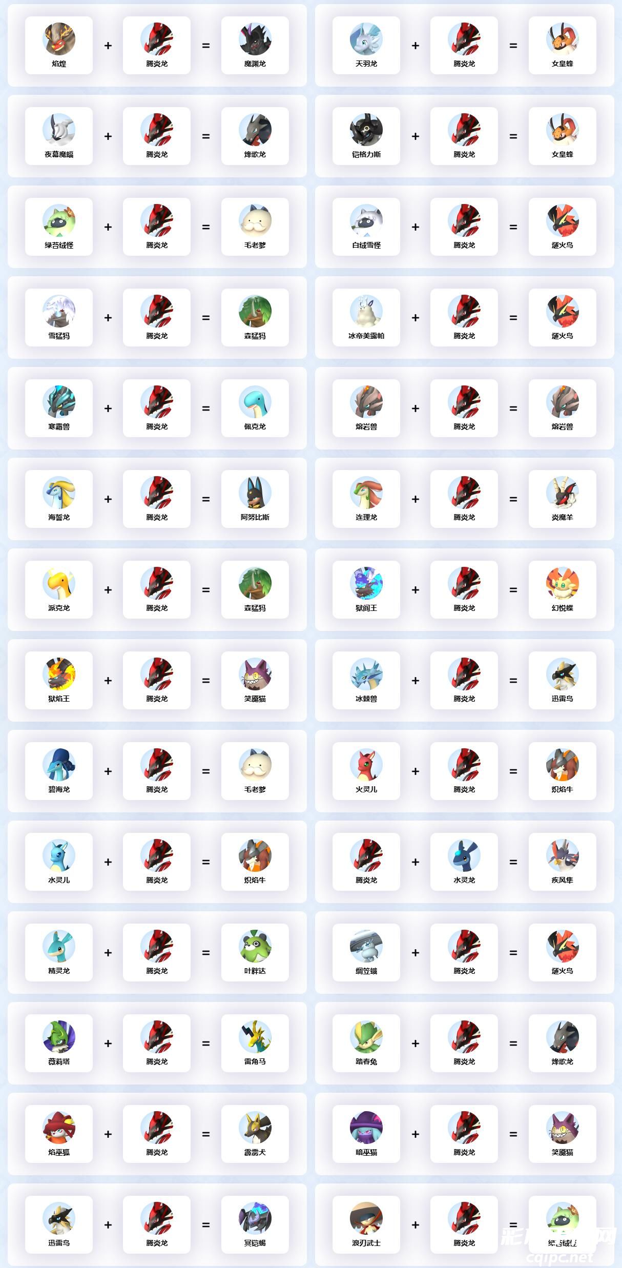 以上就是腾炎龙配种公式大全的所有的内容了,玩家只能通过本体之间进行配种,并且提供了腾炎龙作为父母代的配种公式,希望可以帮助到大家。