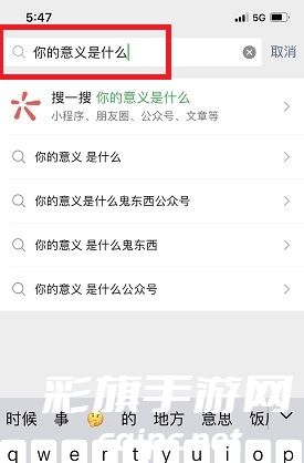 1、首先打开微信,在微信搜索栏中输入你的意义是什么。