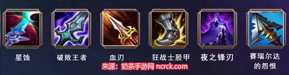 (1) 出装顺序:星蚀+破败+血刃+攻速鞋+夜之锋刃+赛瑞尔达的怨恨