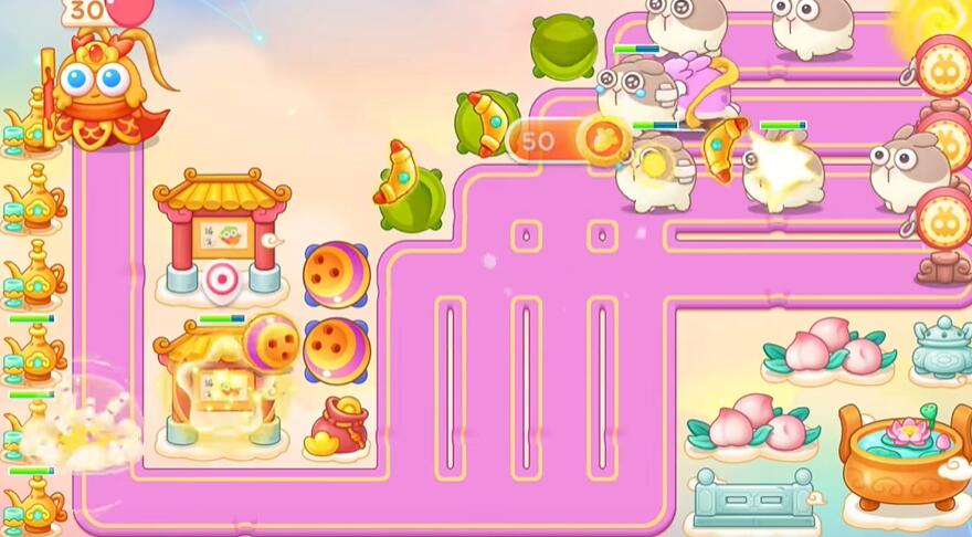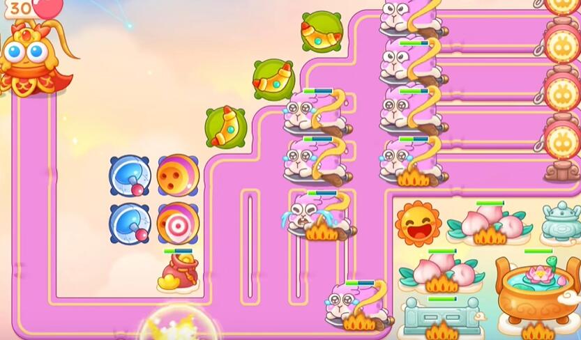 7、旁边障碍物烧掉,快速建立塔防。