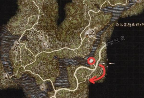 到下图圈出的位置,可以拿到之前拿不到的宝箱,同时放下梯子解锁回营地的捷径。