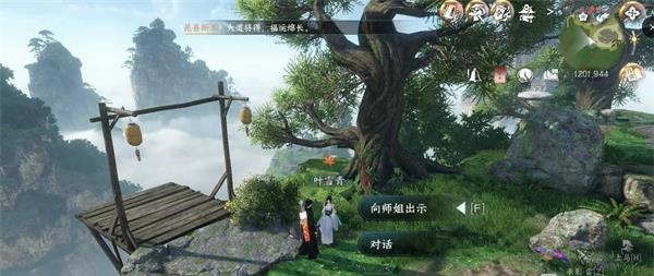1、前往三清山指定位置(坐标为1201.944)处走动,触发奇遇并与师姐对话。