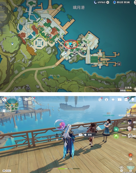 1、玩家打开地图来到璃月港的右上方传送点,如图所示。