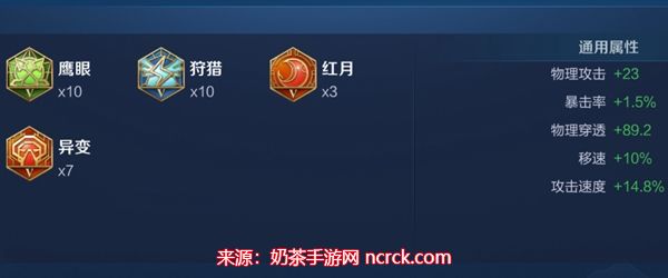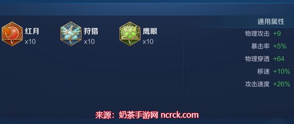 4、第二套铭文搭配:10红月、10狩猎、10鹰眼