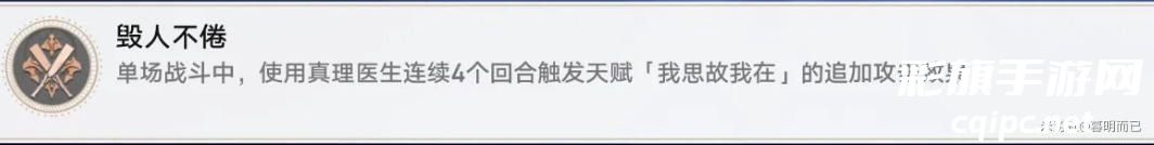 这个成就需要真理医生连续四个回合触发天赋的追加效果(也就是在释放战技之后,进行追加攻击)
