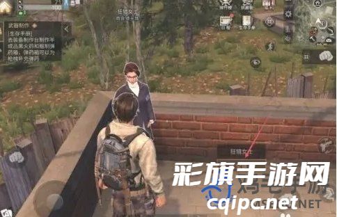 1、首先我们需要去到营地市政厅上二楼,在楼梯上遇到狂猎女士NPC;
