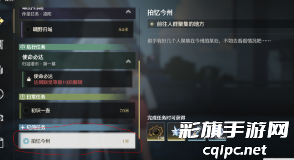 1、这个【拍忆今州】任务在做完主先后就会自动接到,直接追踪就好;