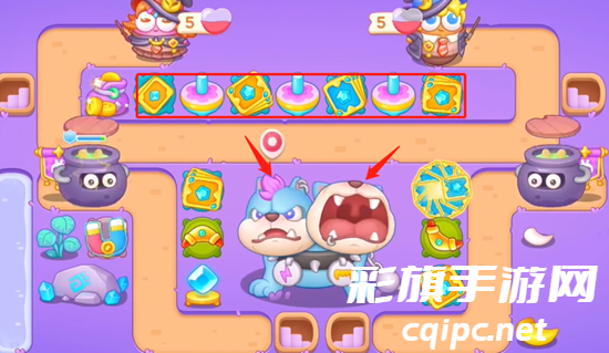 2、把两个魔法石打掉之后,继续放置卡牌,上面这里的一排也要开始放置清理了,尽早拿到全清打BOSS。