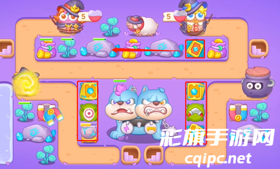 3、上面清理出来,我们还是放置卡牌,可以放置陀螺来增加群体攻击能力,不出怪就一直锁定BOSS打。