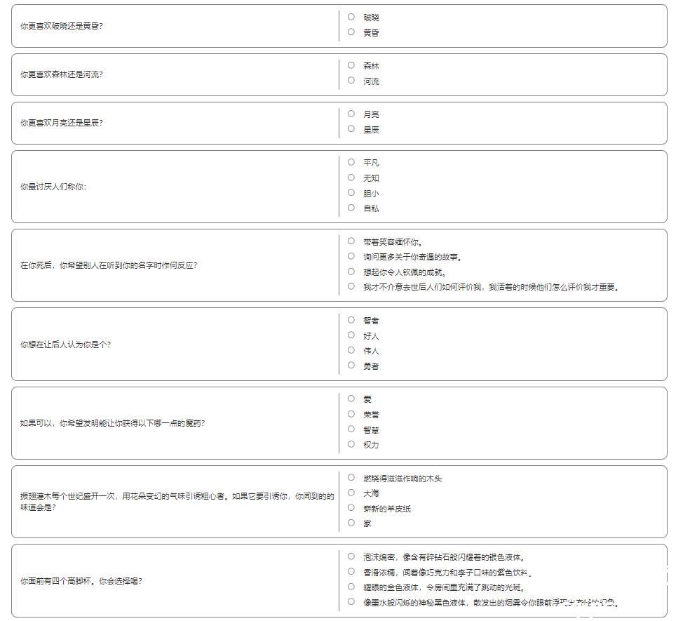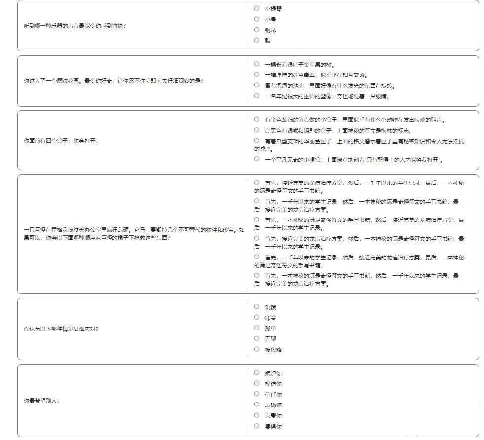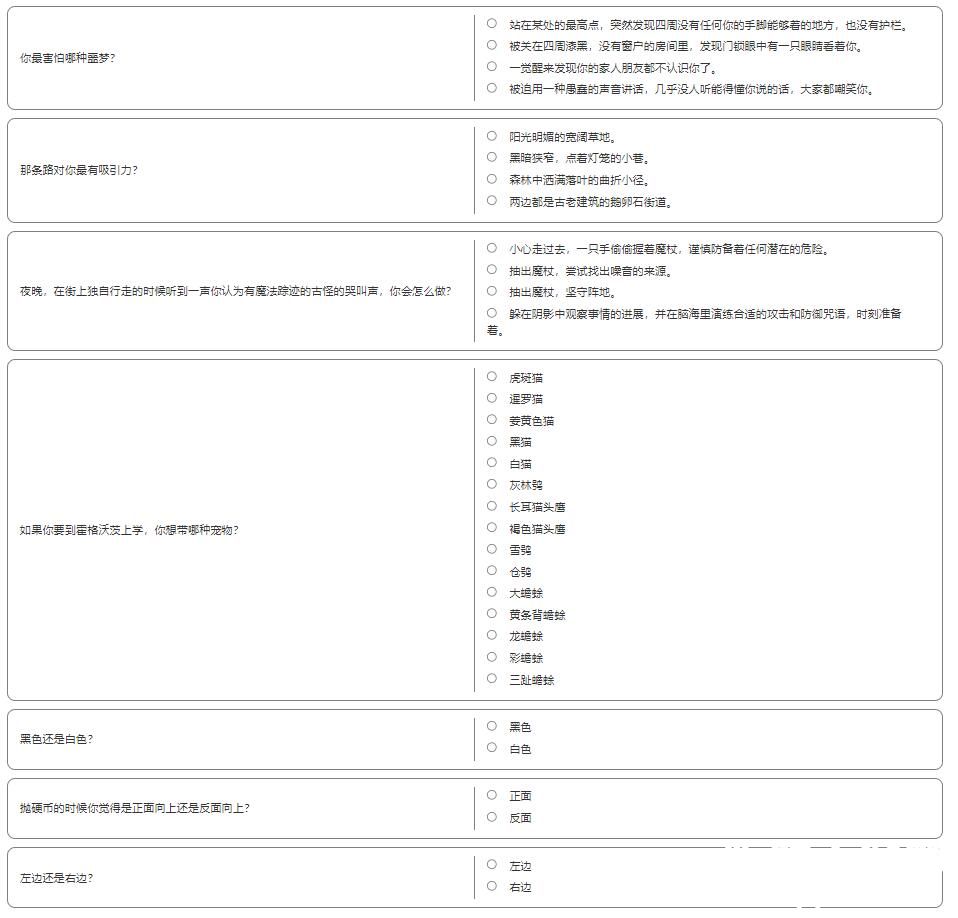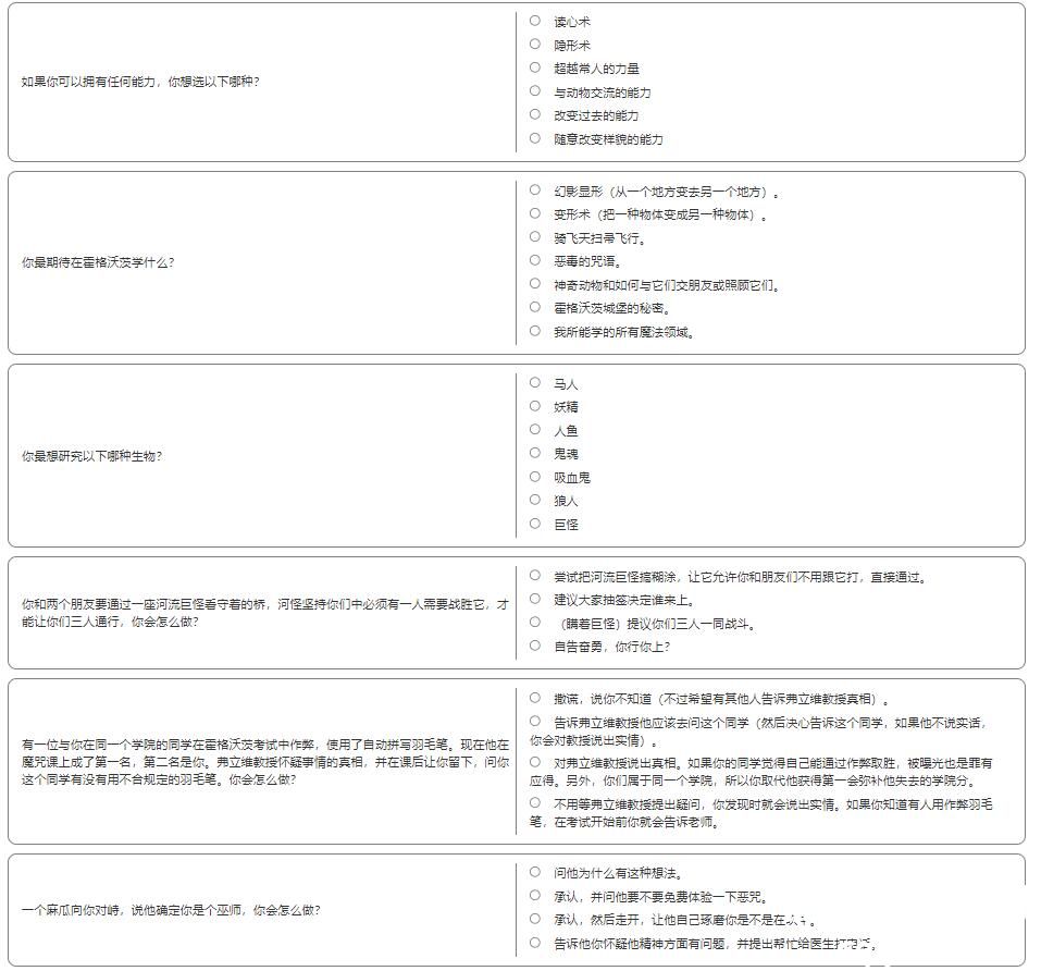 霍格沃茨分院测试问题一览: