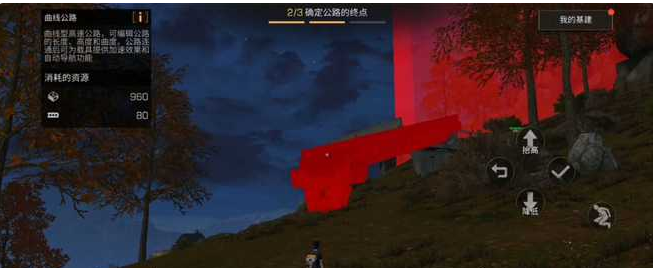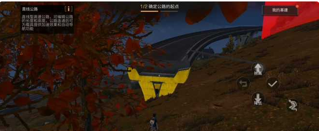 2、公路建造要在一个路段的末端选取 选择终点以及公路和弧度。