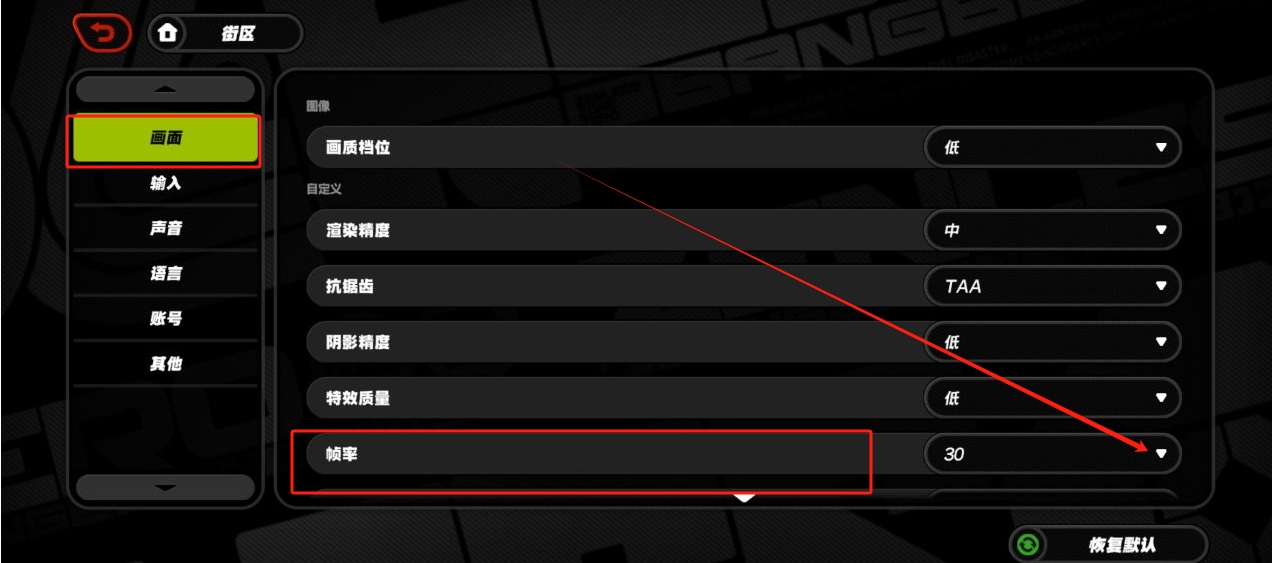 设置-画面-帧率-无限制帧率。