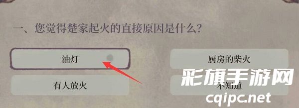 选项:油灯、厨房的柴火、有人放火、不知道