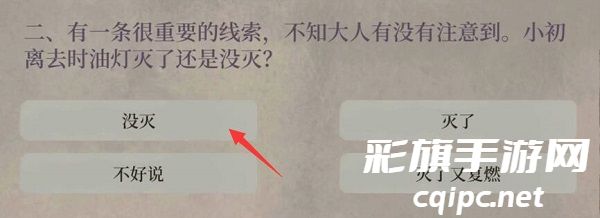 2、有一条很重要的线索,不知大人有没有注意到。小初离去时油灯灭了还是没灭?
