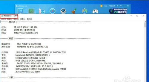 3、在询问是否打开报表的对话框中,点击“确定”选项,鲁大师打开以TXT纯文本格式保存的电脑配置详细信息。