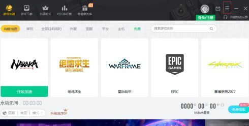 1、打开“雷神加速器”,点击这里的三条横线展开图样。
