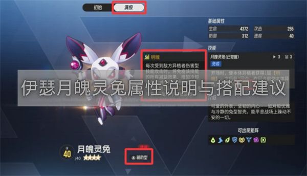 在《伊瑟》中,月魄灵兔是一个全新的传说级别辅助型智壳,大部分的玩家不了解这个智壳的属性是什么与怎么搭配,下面彩旗小编会带来伊瑟月魄灵兔属性说明与搭配建议的资讯,想要培养月魄灵兔的玩家可以来看看吧。