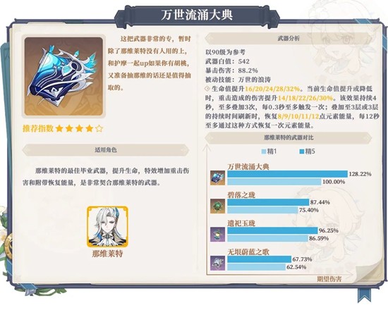 有精5的遗祀玉珑可以考虑不抽,不过遗祀玉珑很难配平面板,而且因为专武有回能,使用舒适度上会差很多,但因为那维莱特现在的数值差了一点,如果不是补强,不推荐去抽这个角色和武器