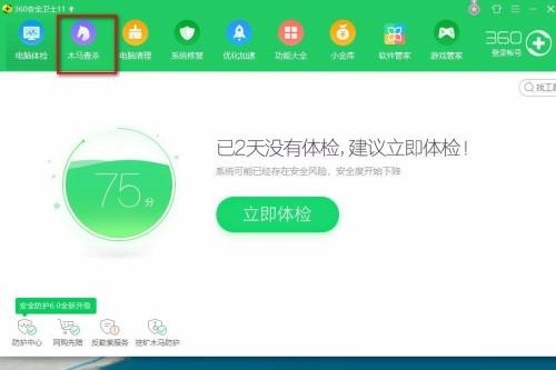 1、打开360安全卫士软件,打开的主界面点击木马查杀。