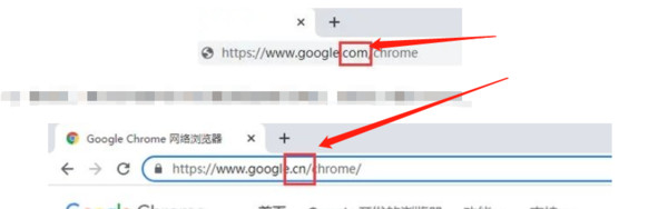 3、之后,在谷歌浏览器上方的地址栏中,将谷歌浏览器官方网站地址中的【com】改为【cn】。